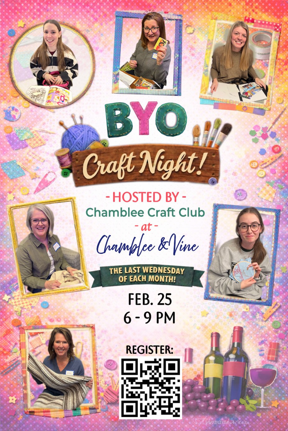 Craft. Sip. Repeat. Join us on the last Wednesday of every month for BYO Craft Night at Chamblee & Vine – where your creativity flows as freely as the wine.Â