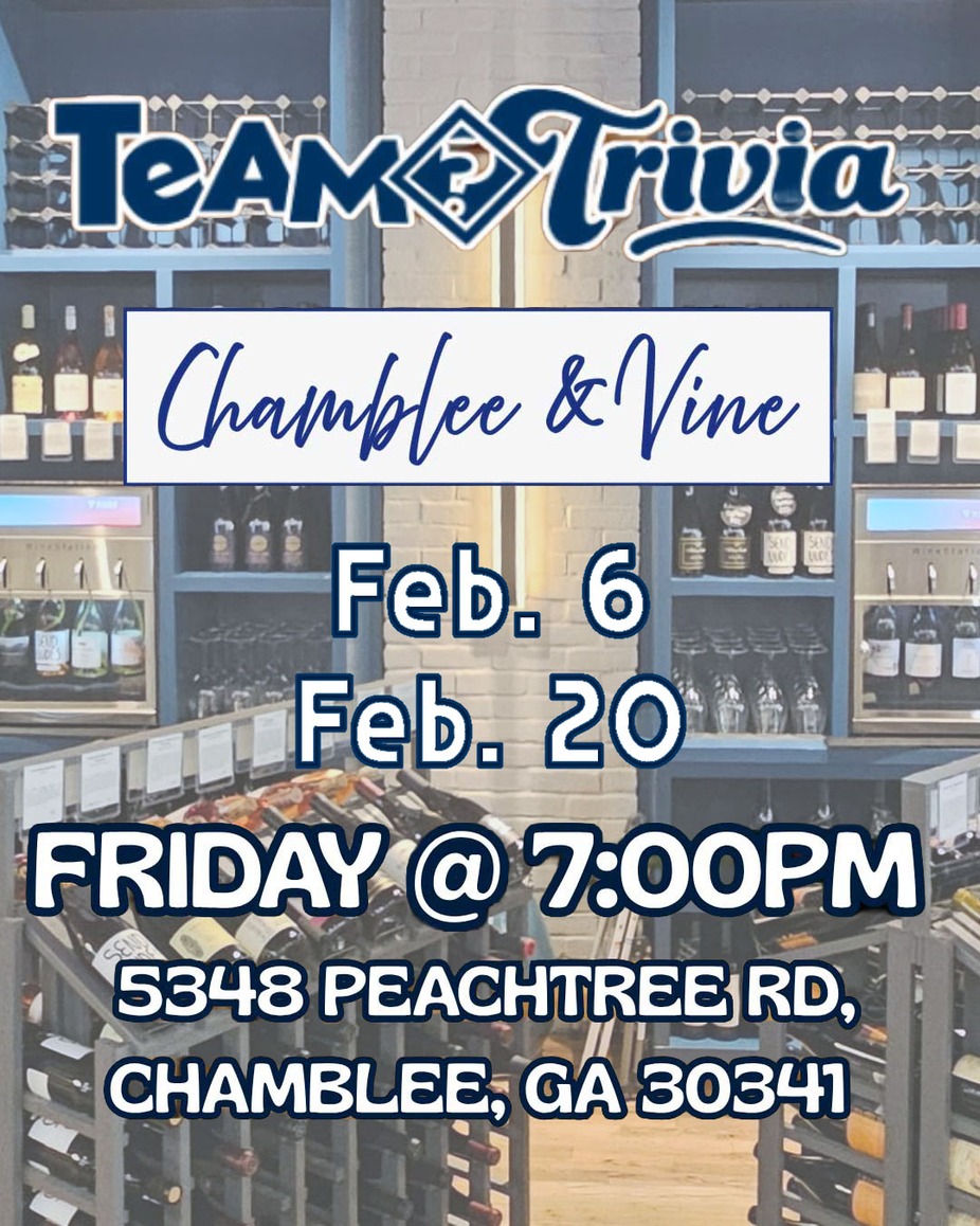 Team Trivia is happening at Chamblee & Vine every other Friday at 7:00 PM.Â